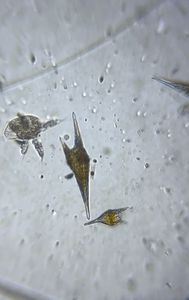 Water surface discoloration - Tripos spp. bloom in northern Patagonia.