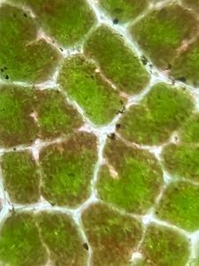 The microbes were very active all around the leaf and you can see the bacteria moving about as they do their work! These videos used the 140X lens plus 3X digital zoom on my phone.