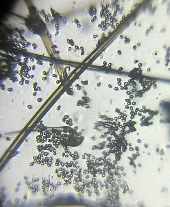 Los hongos son organismos multicelulares que mayoritariamente pueden verse a simple vista. Sin embargo, existen otros grupos de hongos, denominados moho, que es más difícil notarlos. Este tipo de hongos, puede aparecer en la materia tanto vegetal como animal (fruta, verdura, pan húmedo, quesos etc) y sus esporas se transportan por el aire, el agua o los insectos. Por ejemplo, en aquellas frutas o alimentos que hemos olvidado en el fondo del refrigerador, es común encontrar después de días en su superficie un polvillo verdeazulado, blanco, negro o grisáceo. Este es el moho, que invade desde su interior hasta la superficie. El moho es un tipo de hongo que se encuentra prácticamente en todos los ambientes con humedad y oxígeno. Por lo anterior,para esta observación aproveché un tomate y una cáscara de plátano con moho en la superficie. En la figura 1, se observa el micelio de color blanquecino, éste se presenta en forma de hilos.Estos hilos forman pequeños tallos donde se forman las esporas (Fig.2). Las esporas le dan el color al hongo ; es decir, todo ese polvillo de color sobre las frutas es solo una parte del hongo (Fig. 3).