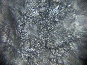 It's a small piece of a paper(roller/kitchen) towel showing the fibres.