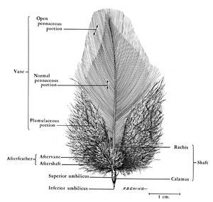 Here's something cool: feathers near the base don't have those little hooks and are more relaxed in structure. Sometimes, birds have a bonus tiny feather growing from the main one called an aftershaft.