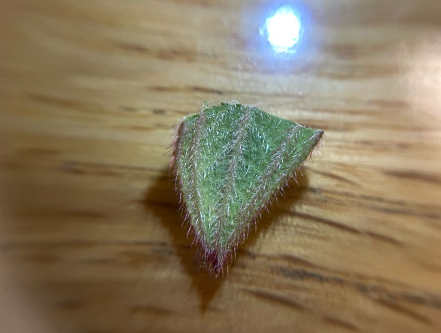 underside of a fresh leaf - small spines are fuzzy yet look rigid