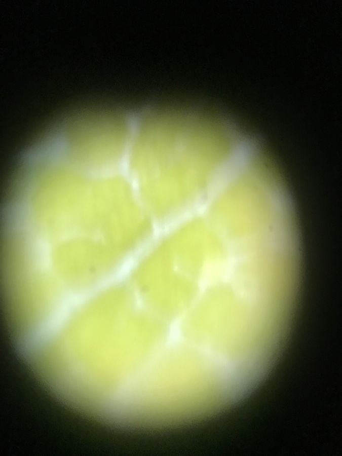 The first part of the leaf I looked at in my Foldscope Microscope was the edge. It occurred to me, the shape of these cells is odd! I realized that since I was looking at the edge of the leaf, I was seeing cells that were compressed in structure.