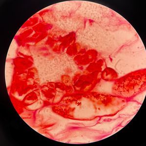 Moving away from the exposition and onto the topic at hand, the Foldscope is a marvellous piece of equipment that brings the advancements of microscopy out of the sterile environments of research labs, and into the hands of curious-minded individuals who want to understand the world around them. An avenue of its use can be for researchers who aim to study samples collected from the field using microscopy, however, the process of gathering and preparing samples for imaging, and then only viewing them once provided access to a light microscope wastes time and prevents on-site analysis - this is where the Foldscope shines, allowing for this in media res data collection. To illustrate the principle of collecting microscope data both on-site and in-lab, two sets of micrographs are presented. First, the following images are taken using the Foldscope of prepared kelp tissue sections.