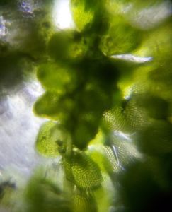 Bitácora Foldscope Una de las cosas más divertidas que nos gusta hacer mientras estamos en la escuela es explorar. Nuestra región y el lugar en el que vivimos nos permite contar con maravillas naturales apenas a unos metros de nuestro salón de clases. En otoño nos dieron ganas de descubrir un poco aquello que ocultan los musgos de nuestros árboles. Así que nos pusimos manos a la obra ayudándonos de nuestras herramientas Foldscope: un microscopio y una lupa LED. El árbol que elegimos tenía su tronco completamente cubierto por musgo, unas plantas maravillosas y cautivantes. Solo hay que dar una vuelta por la web para encontrar muchos artículos que nos hablan de los musgos. La Wikipedia es un buen comienzo. Y es que si queremos conocer de su morfología, ahí podemos encontrar lo básico. Por ejemplo, durante nuestra exploración notamos que entre el musgo destacaba un filamento que terminaba en una estructura parecida a una copa (cápsula) de la cual salían unas pequeñas bolitas (esporas). Este filamento recibe el nombre de esporofito y es una de las partes sexuales de nuestros queridos musgos. También notamos otros aspectos de estas plantas, como sus filidios, que podríamos decir que son las hojas del musgo.