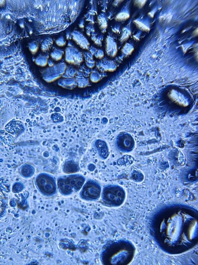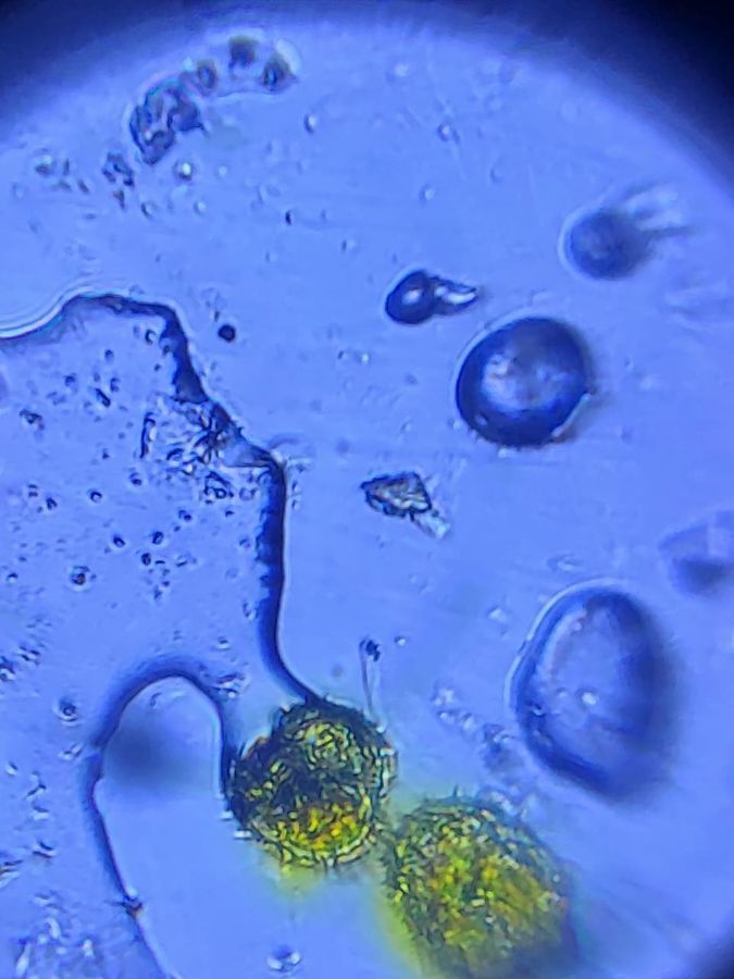 This is the observation of pollen grains with a magnification of 140x. under the foldscope the pollen grains appears to be small round structures with different patterns and textures. Here we can observe the cell wall which looks likes spikes and furrows. This was the one I like the most while comparing to other sample observations