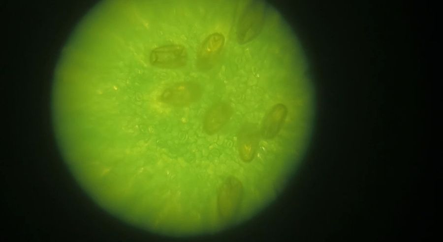 We collected leaves from the surrounding and some of the leaves had tiny white aphid. When looked through the foldscope, microscopic view of the plant cells of the leaf epidermis, which contain chlorophyll. Several stomata were visible as oval or bean-shaped structures with a central opening.