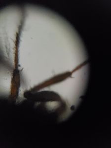 me and a friend went out side to look at an ant with the foldscope for a school assignment. we got a picture of its body and legs. we tried to get a head picture but we could not with it moving so we released it back from where we got it.