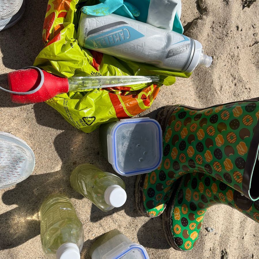 I assembled my sampling gear and went to Spring Harbor Beach in Madison, Wisconsin to see what I could find along the shore and in the shallow water. The beach was closed for swimming due to blue-green algae.