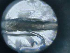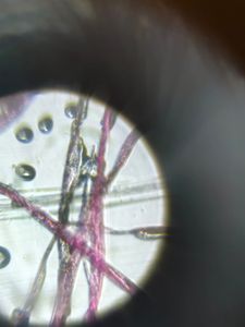 These are the hair samples which we magnified and observed under the foldscope and then we clicked their pictures . We have obeserved and seen :- Root Hair Bulb The Hair Strand