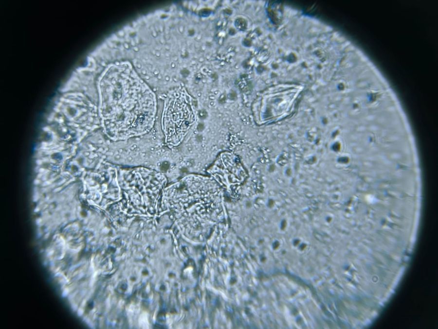 This is the magnified version of the CHEEK CELLS OR SQUAMUS which we saw under the foldscope .