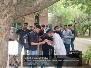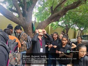 Dr. Sougata Ghosh conducted an outdoor teaching activity at University Bridge Program (UBP) for B.Sc. Sem I students…Fun with Foldscope at School of Science, RK University, Rajkot - 360020, Gujarat, India on 17/07/2025 at 11:30 AM. #Indiafoldscopephase1