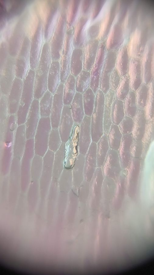 பெரிய வெங்காயத்தை மூன்று பகுதிகளாக பார்க்க முயற்சி செய்தோம். பாடபுத்தகத்தில் இருந்த அமைப்பு உட்புறம் மற்றும் வெளிப்புற தோல்களிலிருந்து நமக்கு பர்க்க முடிகிறது.ஆனால் உல்ர்ந்த தோலில் பார்க்க முடியவில்லை.