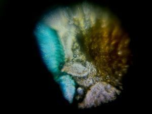 We also prepared a slide of its tentacle — here’s a picture of it! Within a day, the tentacle dissolved into a striking blue liquid.