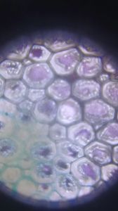 Zoomed in pictures of onion peel and fern: