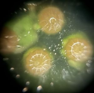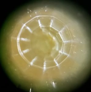 I didn't get much more detail with the 140X magnification lens, but I was able to observe the beautiful symmetry when viewing them from the top down. It looks like the wheel of a ship, doesn't it?