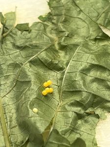 I found some eggs on the back of a green bean leaf in my garden. What did I do? I brought the leaf inside and put the eggs under my Foldscope 2.0 of course!