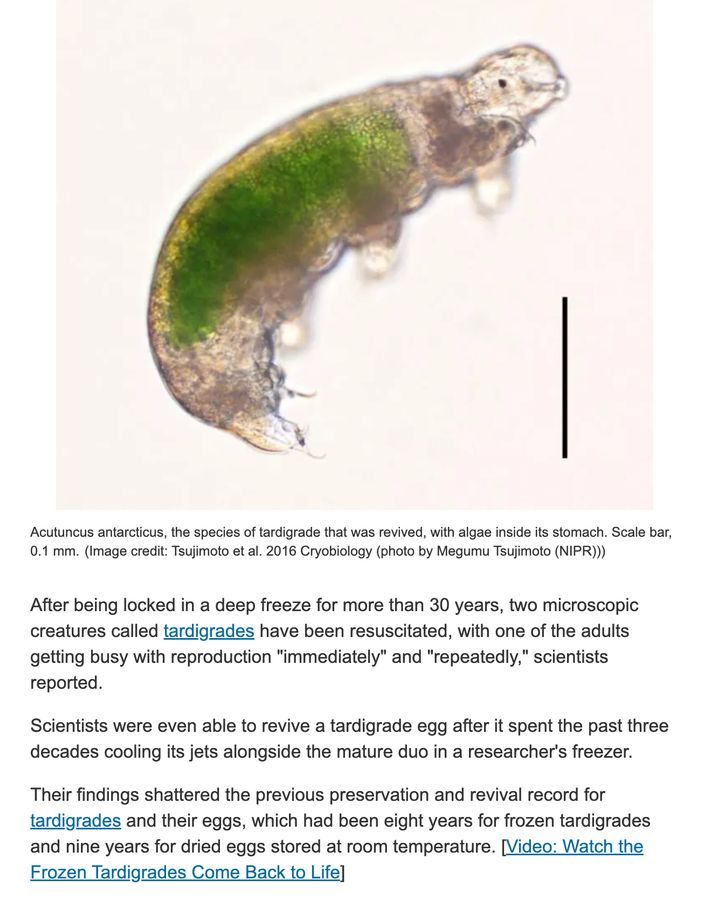 My journey with tardigrades The humble tardigrade, or "water bear," has captured the popular imagination for its seemingly indestructible nature. It has also drawn scientific attention due to its extraordinary ability to go into all 5 states of suspended animation, also known as cryptobiosis.There are 5 kinds of cryptobiosis: anhydrobiosis(no water), anoxybiosis(no oxygen), cryobiosis(temperature drop), chemobiosis(high toxins) and osmobiosis(too much water). My own journeys to find tardigrades started three years ago, and I looked at all kinds of samples, but I did not have success until quite recently, when as I inspected a lichen sample to find rotifers, I stumbled upon a lone tardigrade.