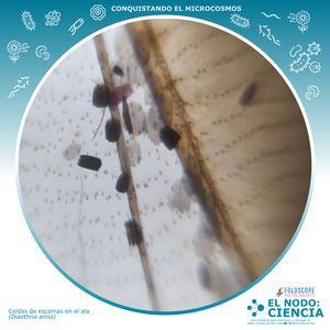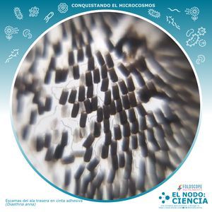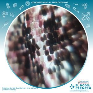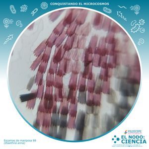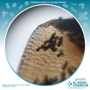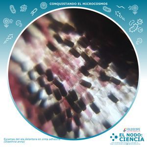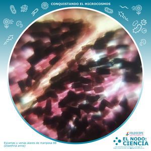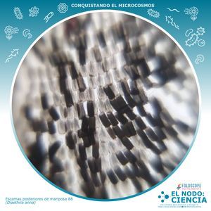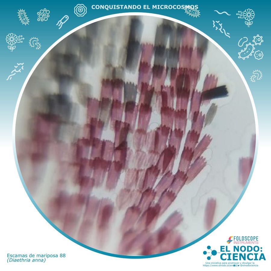 Les comparto una vista de las escamas frontales del ala de la mariposa 88 desde la lente del Foldscope.