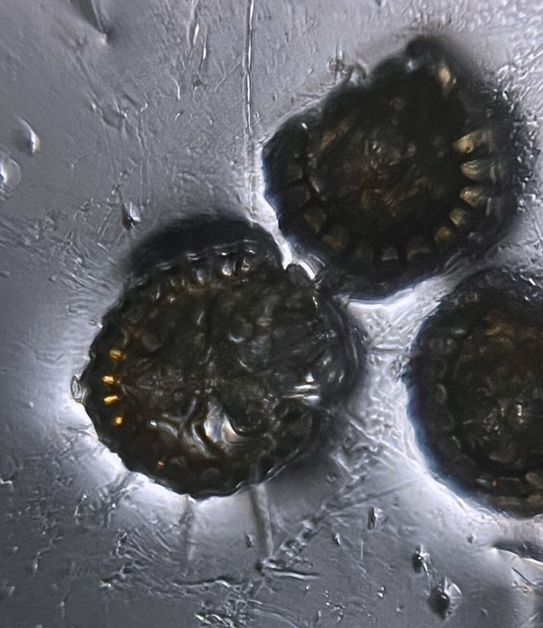 Figura 1.-Esporangios de helechos maduros, sin abrir.