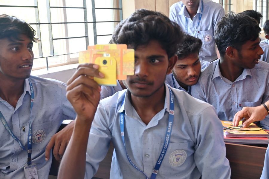 Accompanied by Dr.Debarati at Loyola PU College, day 2 was fun as we were being constantly called to take pictures. The students were happy to see things so close and each time they focused they now got better and hence took less time to focus the slide. One of the highlights of the day was how the students spoke in Kannada to express themselves, we encouraged them to write in English using small words that would help them in their academic progression. Tomorrow, we'll dive deeper into the world of microscopy, using it to design an experiment Stay tuned for more updates from our Foldscope workshop! #Foldscope #Microscopy #STEMeducation #StJosephsUniversity Thanks to all the student mentors and the educators at St. Josephs University specially Dr.Mitra Madappa for this wonderful engagement.