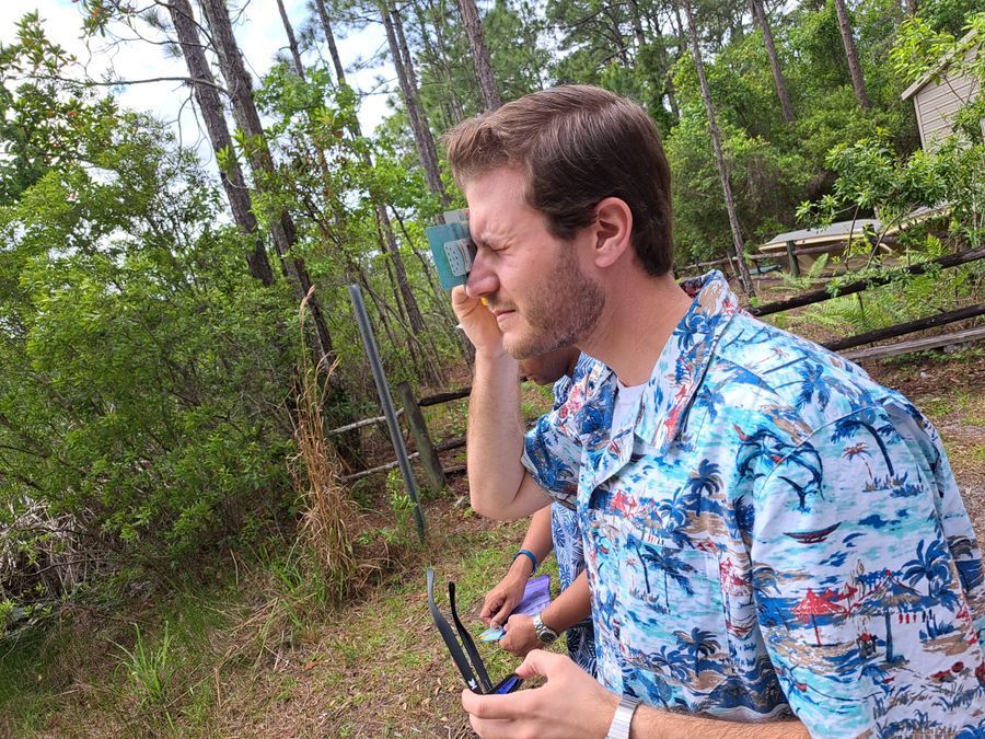 Pictured: Ben Tuttle utilizing the foldscope at Ecoadventure