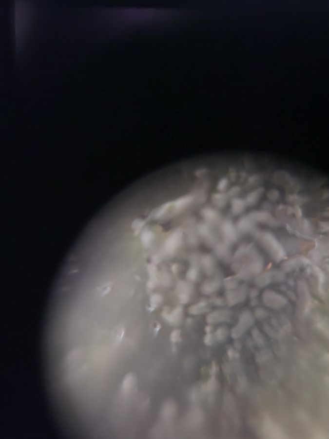 Experience: Our overall experience was very positive. We were able to go out into nature, collect samples, and capture what we saw by attaching our Foldscopes to our phones. However, this was not without some difficulties. Issues included having trouble attaching the Foldscope to the phone, properly aligning the sample under the lens, getting the right light, and obtaining usable samples. Despite all of this, we were able to overcome these challenges and get some great pictures of our collected samples through some trial and error.