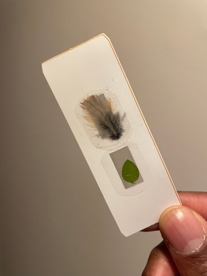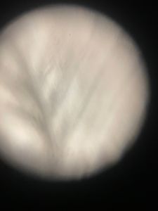 Upon inspecting the feathers under the foldscope, I could just barely see individual barbs and barbules along the rachis but not in great definition. This was my first time assembling and utilizing a foldscope, so I still have much to learn in regard to operating it.