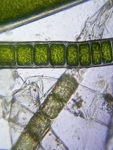 Ulva lactuca, morte et vivante (représentée respectivement par les lettres A et B)