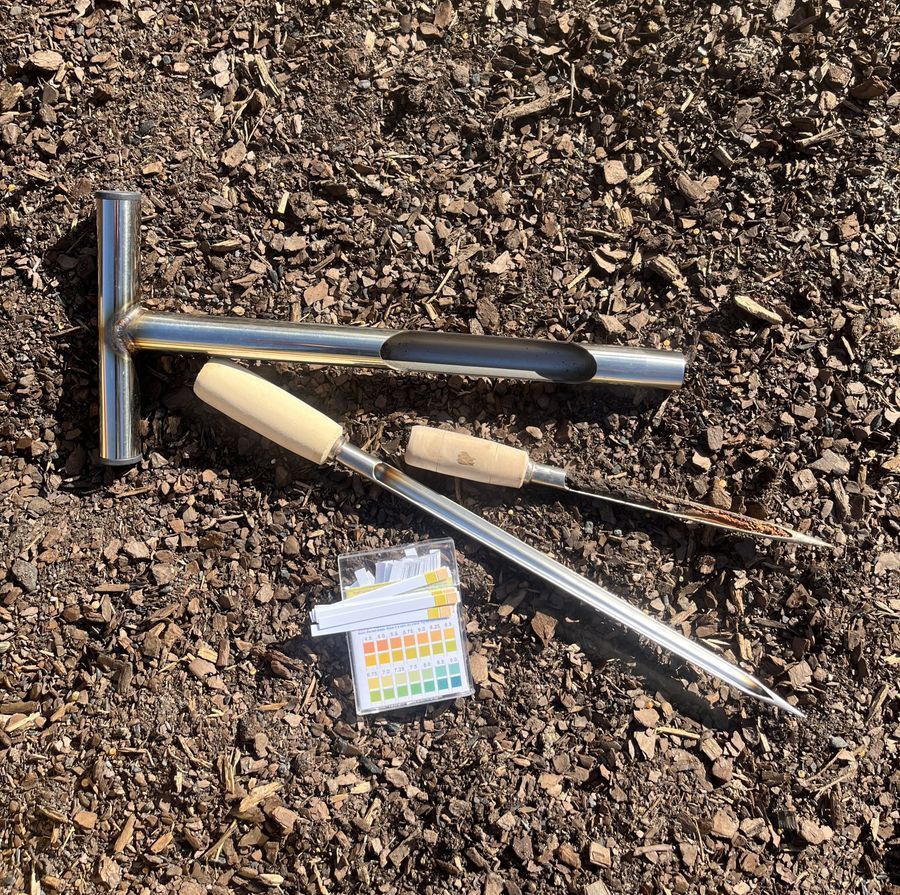 Soil is made of multiple layers (also called horizons). Organic material is found in the uppermost layers and the horizons get progressively rockier the farther down you go. I used a soil corer to see what the soil profile of one of my garden beds looked like. You can see in the picture that the color went from a rich dark brown to a reddish orange at the bottom. I decided to look at the particles in each layer under my Foldscope 2.0 to better understand what was in my soil.