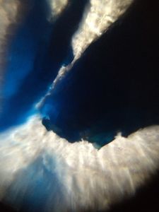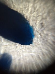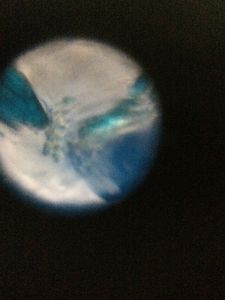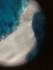 Question of a 6-year-old: What is inside a crayon? Thoughts: It looks like big paint blotches. It looks really thick and creamy, but the edges were thin. It looked sticky even though I know that it is really hard.
