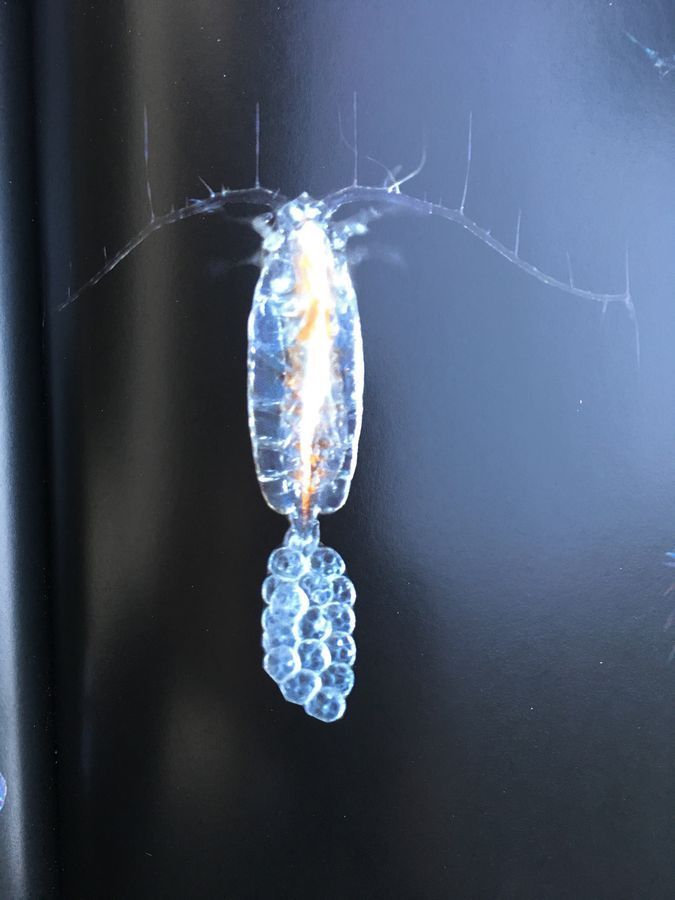 This is a meta learning post of how the foldscope contributes to my learning and growth, which I felt was worth sharing. From the same Hopkins trip where I found the nudibranch eggs, I also was able to find Copepods swimming in the ocean water sample. I took two videos exactly and couldn’t make head or tail (literally) of the Copepods. I left the videos on my phone and forgot about them, until right now. I’m sure you have a similar experience where you stick something under the foldscope but don’t ‘learn’ anything per se from the experiment. Today, I came across this book from the stanford library and I was leafing through it and saw the following images.