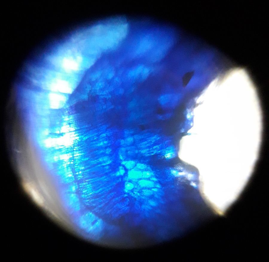 Black turtle bean- cross section of stem stained with methylene blue
