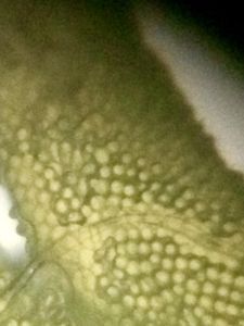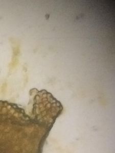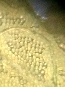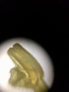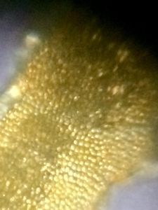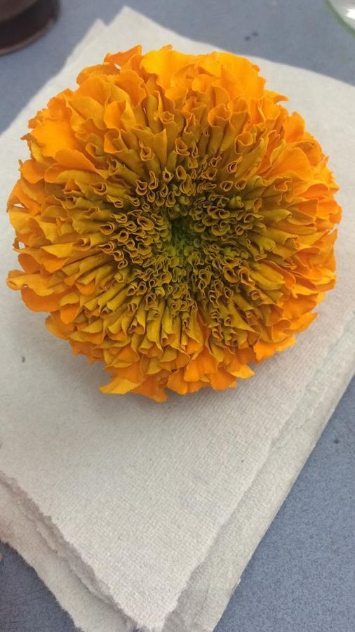 Tagetes erecta commonly called African marigold belongs to family Asteraceae is an easy-to-grow flowering annual that requires very little maintenance. Marigolds are known for their ornamental importance as well as for production of lutein, the yellow compound. This is an important chemical for eye health, and some companies breed marigolds specifically to produce blooms rich in lutein. Lately flower size has increased and the foliage reduced commercially. Leaves are pinnately compound and leaflets are lanceolate, serrated. Flowers are single to double hybrids with large globular heads. Flower colour varies from lemon yellow to yellow, golden yellow or orange. Now a days dwarf varieties with prolific flowering are produced by using male sterile African marigold ( T. erecta ) and French marigold ( T. patula ).Golden orange marigolds were plucked from the college garden and their disc florets gently teased and fixed on a slide to observe under foldscope.
