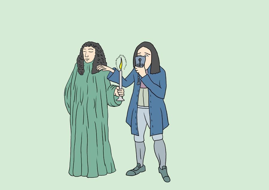 Leewenhoaek showing samples to Robert Hook who came from Royal society London to verify his absurd claims of witnessing floating animals in a drop of water!