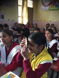 Foldscope orientation workshop was organized at S. Baldev Singh Govt. senior secondary School, Majatri (SAS Nagar). Use of audio visual aids is rarely done in classrooms in rural setups. Theoretical explanation and videos on foldscopy raised curiosity in the students. This paper microscope really fascinated them, They want to use it on their own. They have observed the slides which were part of their curriculum.