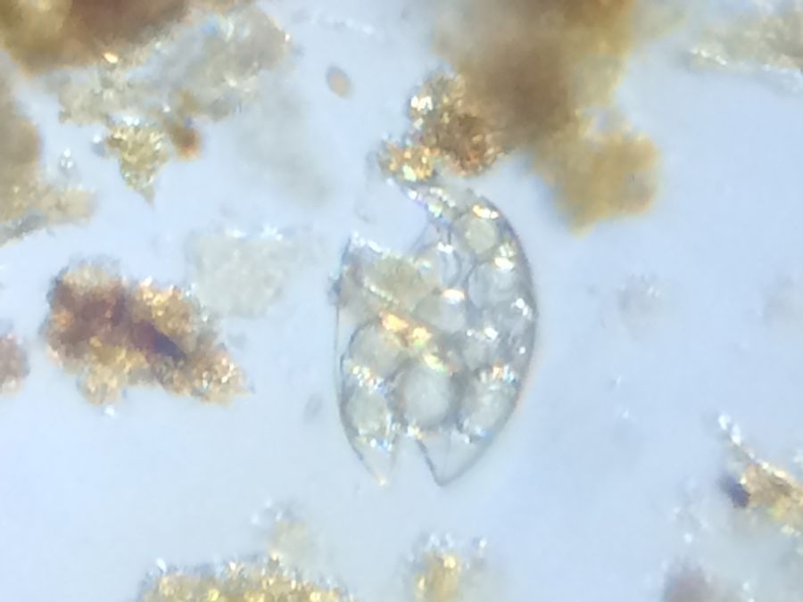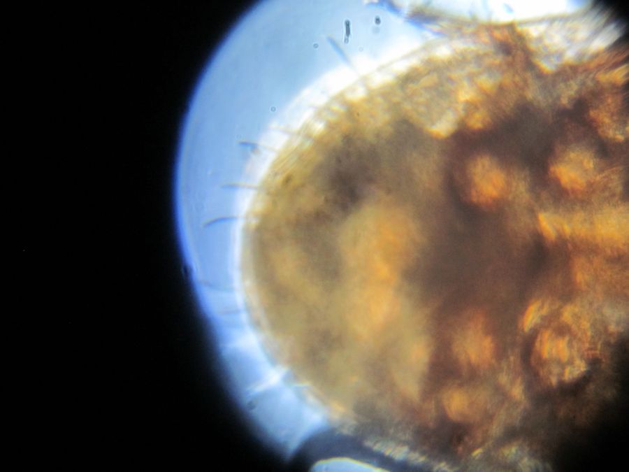 I’ve only just started out testing my Foldscope and these are my first shots of trying to get down with the compost crew from my kitchen composting bucket. I’m interested in soil biology, or rather compost food web diversity for producing quality compost tea. It’s very exciting to actually be able to asses the diversity of microbes in a compost batch! Since compost quality is critical for regenerating degraded soils and making quality aerated compost teas, assessing the samples is important, and Foldscope will allow me to do just that! 🙂 The samples I tested so far are from my kitchen composting bucket. This is where I compost home bio-waste; everything left over from food preparation (so just ‘raw’ biological waste), tea, coffee, plant residuals, egg shells, old spices, hair from brushing, etc.. – the green component – and stuff like toilet rolls, ear cleaning sticks made from paper and cotton, cotton swabs, sawdust, leaves, cardboard, etc… To get the batch started, I do collect a bit of forest soil and litter as all the decomposers for jump starting the process of biological food processing are presumably there 🙂 Sometimes I add IMO 1 (using this method: https://www.ctahr.hawaii.edu/oc/freepubs/pdf/bio-9.pdf) to add diversity. But most of the time I just use older compost to start a new batch. So, I do expect to find the general populations of the soil food web found in my temperate climate deciduous forest ecosystem in my compost. I’m interested in who I’ll be able to find in this type of composting method (this is the principle: https://youtu.be/t_1HL9H1cnA), and then compare the microbial populations I find in a thermal compost batch (Dr. Elaine Ingham recipes), and the Johnson-SU Bioreactor. Ok, so here’s my first try and some of the guys I encountered in one sample of the kitchen composting bucket: A springtail (Collembola) Mite (Acarina; not sure which type – is it a predatory mite or a fungal feeder or …?).