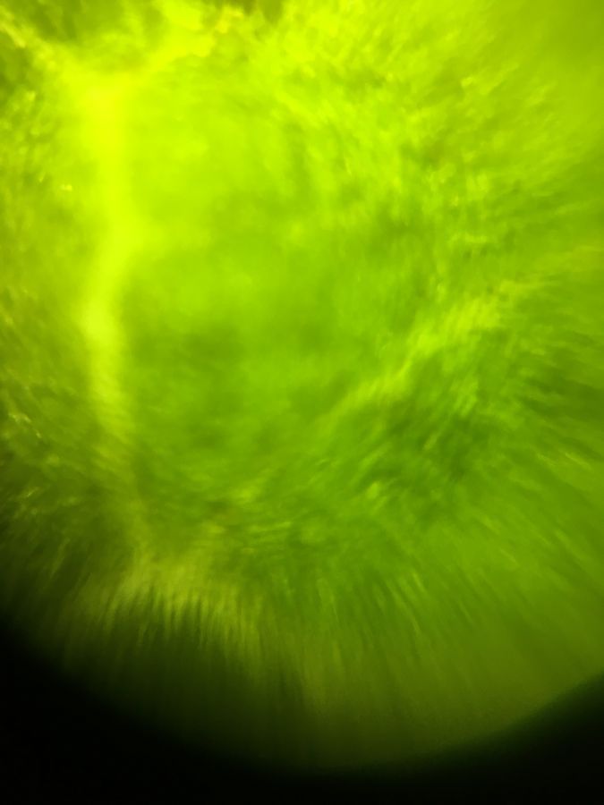 One cold, dreary winter day during reading period, we pondered plant life on campus. After learning about herbivory in lecture, we thought it would be interesting to use the Foldscope as an opportunity to see some up close. We had also just finished a project on beech leaf litter and were searching for ways to apply what we had learned to other species. Because of its abundance on campus, we decided to take a look at signs of herbivory on ivy plants using the Foldscope we received from our lab instructor. We began by using the Foldscope on a healthy leaf to get a feel for the proper coloring and structure of the leaf under such magnification.