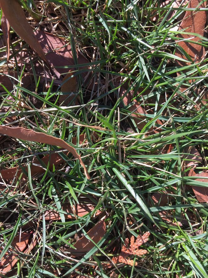 After looking at the dirt, I couldn’t identify much. I did see more grains of sand, and dark clumps of organic matter. Also, I saw a root that I had accidentally torn while scooping the dirt. After seeing this I decided that it is more interesting to look at what is within the dirt than the dirt itself. First I started taking samples of grasses from the middle of the field. They were difficult to pull out, for their roots were knotted together. This evoked more questions: How does the density of grass effect the root growth? How deep is the average grass root? How does this change when there are sprinkler systems? Are there any competative interactions between grass species and the oak tree?
