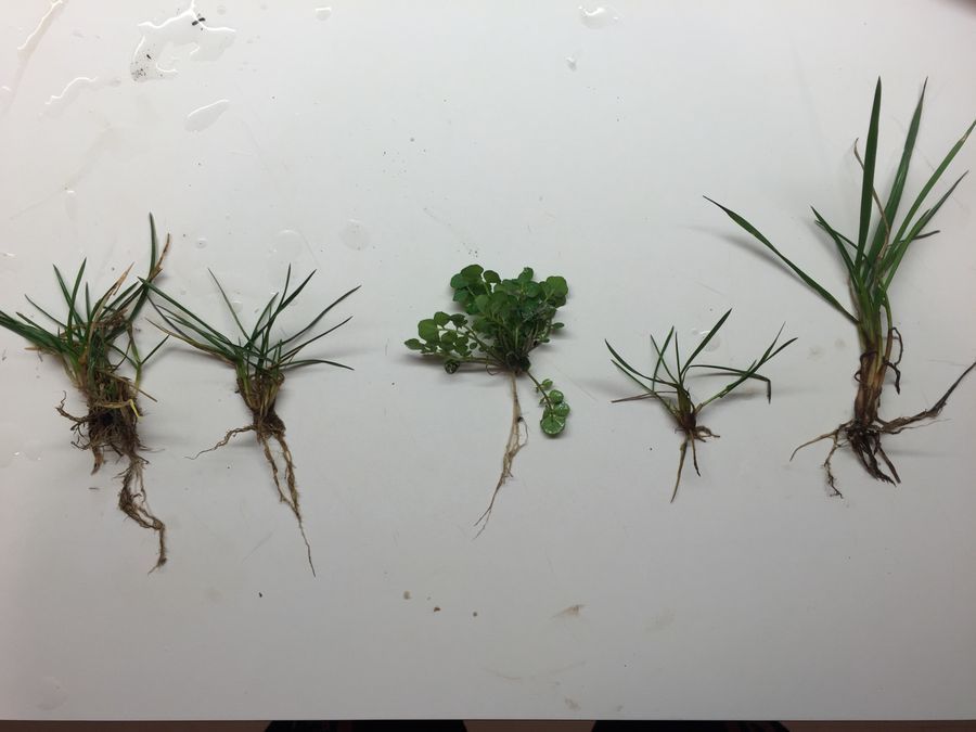 Although it is difficult to see from this picture, these roots of the grass much more branched and intertwined, while the specimen above’s roots all derived from a thicker main root. Also, the roots of the grass were a much darker color and appeared to have a rougher surface. In a future investigation, it would be interesting to see why the roots are brown and whether this trait is special to this sample or most grass roots. Are brown roots an indicator of health?
