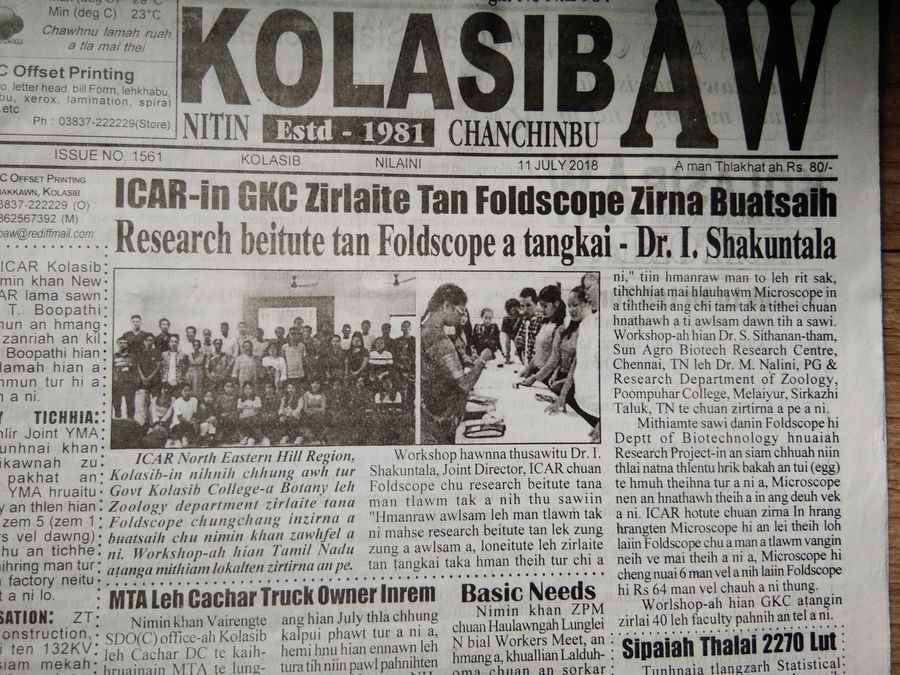 Popuarisation of Foldscope: Indian Council of Agricultural Research Complex – NEH Region, Mizoram Centre, Kolasib