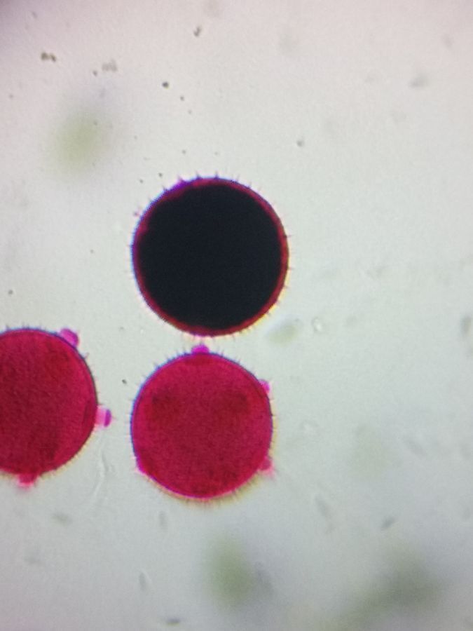 Pollen grains with pollen tubes (germinating pollen grains) of Cucurbita
