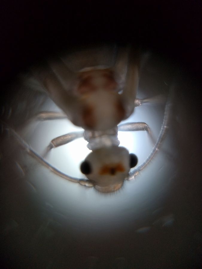 In order to study this, I used Manu’s technique of using silly putty at the four corners of a coverslip and gently pressing the moving insect. For foldscoping, I captured images and videos from two different lenses: 1) the regular lows power 140x and 2) an experimental lens made by Marie which is about 100x in magnification.