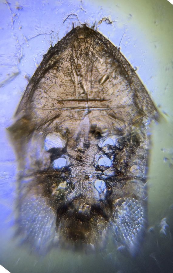 I’m not sure what this is, but it seems like an arthropod. While I was waiting my Foldscope to arrive to Argentina, I prepared a small pond water container with some decaying algae, copepods and water fleas. The first image is a stalk of 3 pictures taken with the Foldscope. The creature shown was less than half a millimeter. The second picture is the same animal shot with a regular macro lens for smartphone.