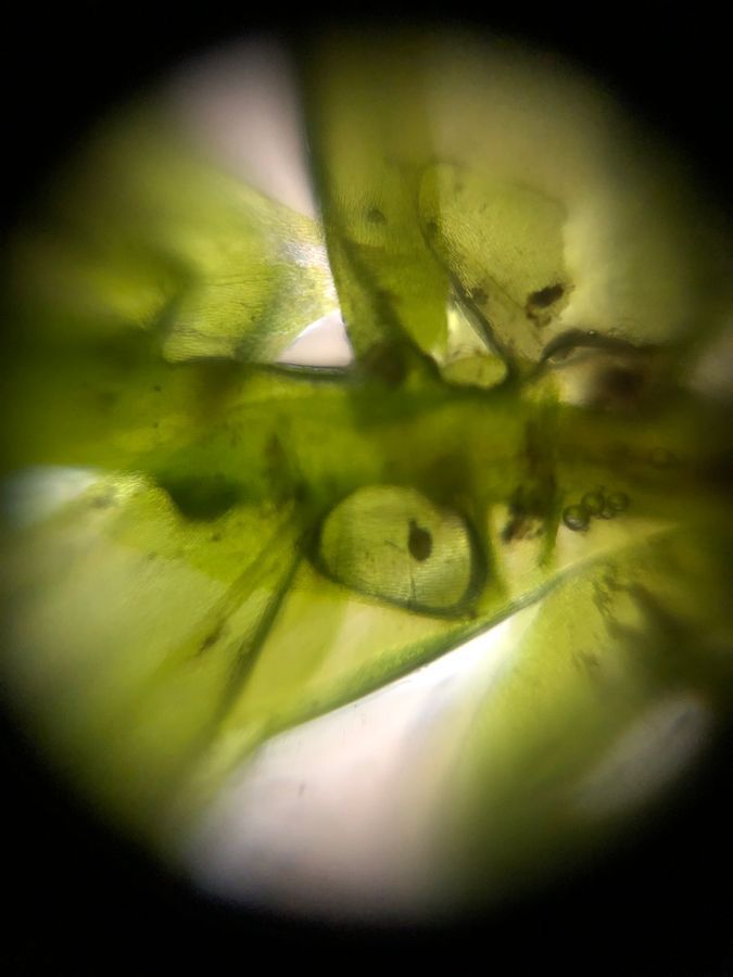 I was actually able to see incredibly fine lines on the leaves. According to the internet, moss leaves are a single cell-layer thick, so I’m thinking I might have been seeing the cell walls? There are lots of lichens and other tiny plants/fungi growing in this wet weather, so it’ll be interesting to see what else I can find and collect for foldscoping!