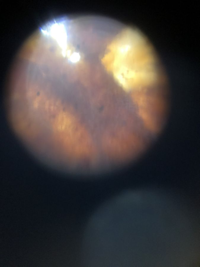 I looked at the prepared slides in the foldscope kit, various leaves and flowers, but I wanted to give a little change to what I view with a foldscope. I was at home very stressed in preparation for my chemistry exam. Of course, I needed chocolate to boost my energy, so I went downstairs to buy chocolate from the vending machine. Then, the thought to eat my chocolate and the soon-approaching deadline to submit our foldscope findings simultaneously crossed my mind. I ran back up to my room, got my foldscope kit out, and prepared a slide with a tiny bit of the chocolate to observe it under the foldscope. It was very interesting to see what I eat under the microscope within five minutes. I would love to carry around my foldscope to observe the different types of food served in Stanford dining halls.