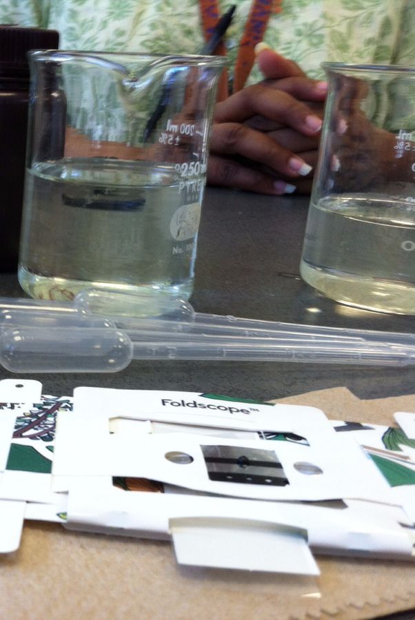 We made homemade well slides out of acetate sheets and hot glue. After bringing the foldscopes to the teacher training class the professor wanted to keep my foldscope – Umm, NO! Everyone quickly agreed how useful the foldscopes would be when taking students out into the field for observations.