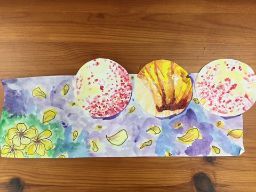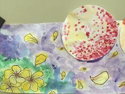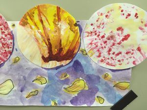 I took my foldscopes to an art classroom as a joint project for the students. The students were asked to find the patterns in nature by looking through the foldscopes and then create an art project based on what they saw. Below is one example of the artwork that resulted from the observations of the parts of a buttercup flower.