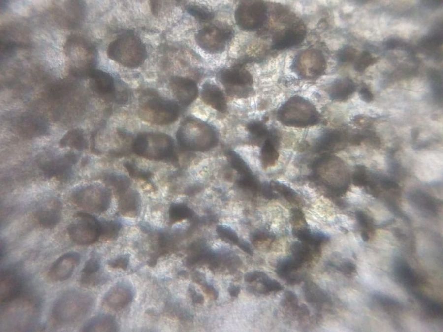 T.S of stem of mad tree showing the central portion (pith) under foldscope.