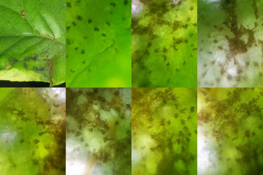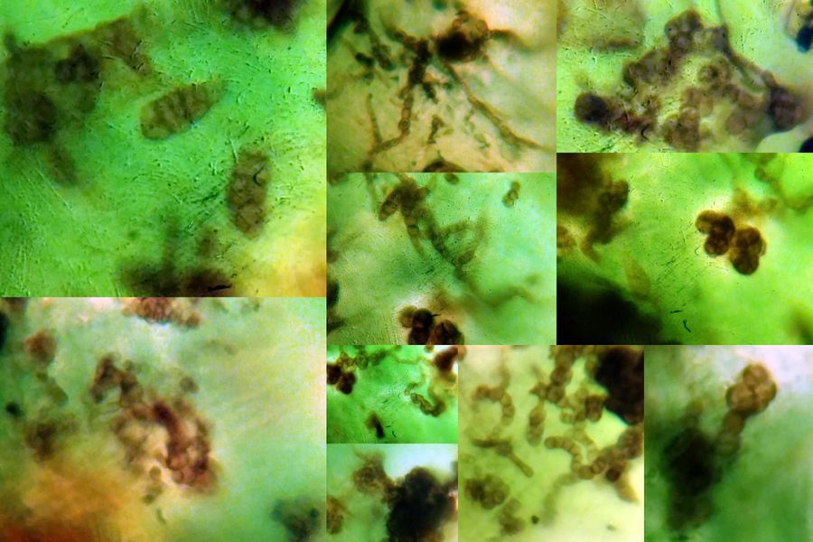 The higher magnification was definitely more revealing. Studies on fungi that feed on the scale insect honeydew have shown that they belong to the Dothideomycete class of fungi, and the second picture on the top shows pigmented conidia just as in Aureobasidium. The first picture on the left looks like Alternaria , but I am not too sure. One thing that became clear is that there is more than one type of fungus in this. These fungi necessarily need the honeydew to prosper and this can be seen in the fungal mats, which are only present on the honeydew. I also need to think about how I can display such fungi so that it is more useful for classification. More experiments are needed here and any recommendations are welcome. Finally, I had a more practical problem of saving my plant, and so I gave it a nice shower to reduce the load of scale insects and wash off the fungus. More on the other animal in the party in my next post.. to be continued.
